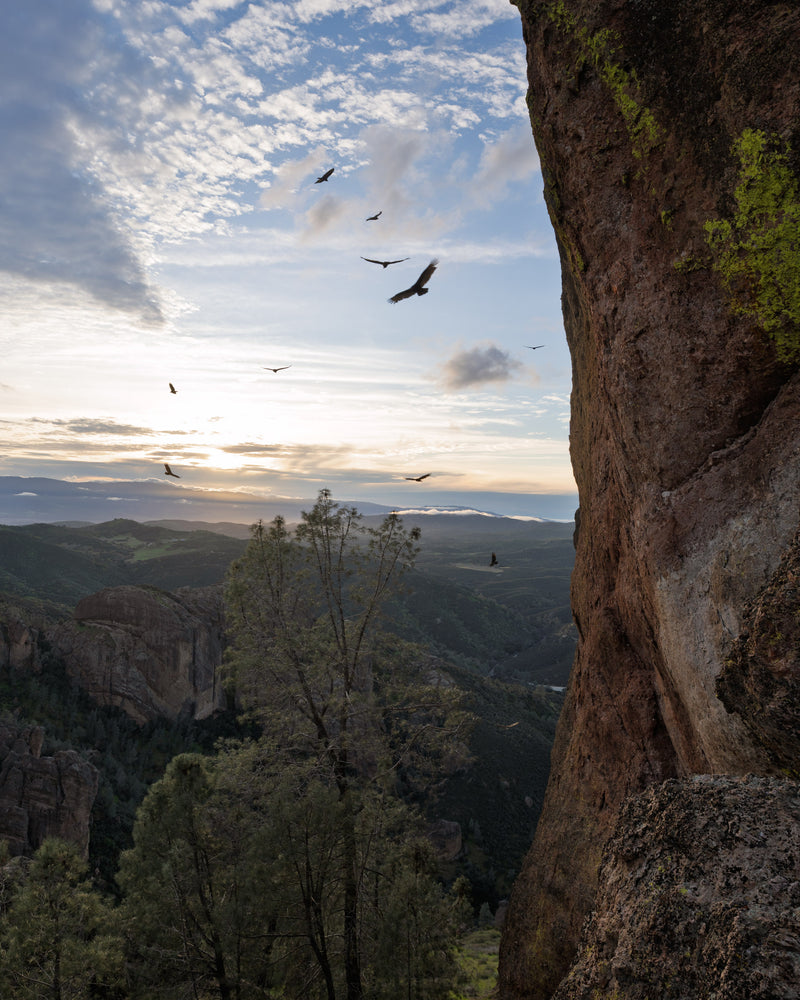 I hadn’t known much about Pinnacles National Park prior to investigating it to build out a map, other than associating it with Condors, and having applied for trail crew spots in my early 20s in the off-season from my Alaska work seasons. Visiting the area in the very beginning of March, right on the tail of some extended rain, I was treated to a lush landscape of green rolling fields as I winded through the remote roads approaching the eastern side of the park. Pinnacles sits pretty much away from anything, an isolated gem of public land surrounded by private ranch land and cattle country.